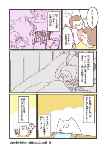 【漫画】生後6カ月の娘が「RSウイルス」感染 入院後、集中治療室に運ばれ…親子の“壮絶な闘病生活”に「ワクチン接種を決意した」