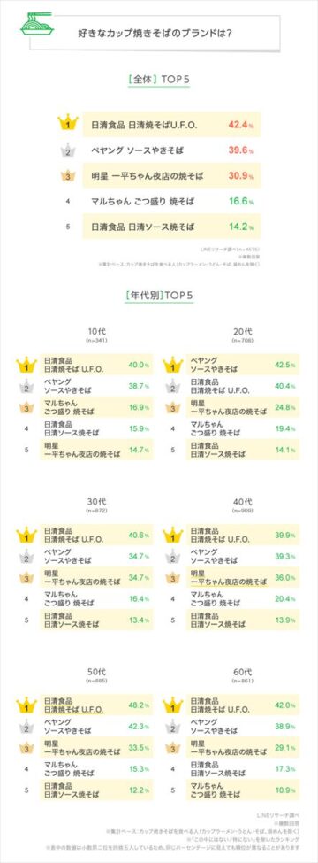 「LINEリサーチ」が「好きなカップ焼きそばのブランド」ランキングを公開。…1位は?