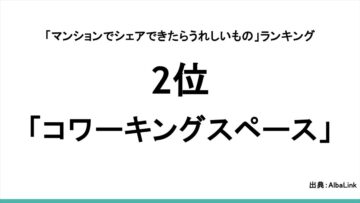 「マンションでシェアできたらうれしいもの」ランキング 2位「コワーキングスペース」…1位は“幅広い層からのニーズが高い”設備