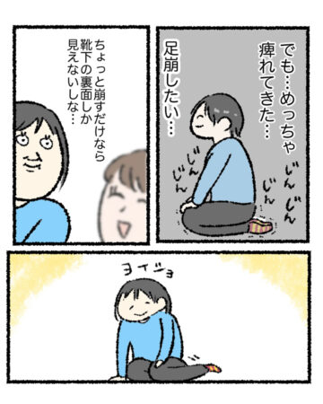仕事のクライアントとの会食に行った作者。座敷の席に座ることになったのですが、靴を脱いだ途端、自分が履いてきた靴下がその場にそぐわないことに気付きました。バレないよう、正座で隠してやり過ごそうと思っていたのですが、徐々に足がしびれて…。読者からは、「笑い過ぎておなか痛い(笑)」「悪いことってなぜか重なりますよね…」「結局バレなかったのかな?」などの声が上がっています。