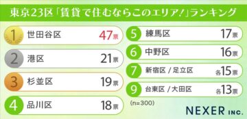 NEXERとエアドアが「東京23区の賃貸で住むならこのエリア」を公開。3位は「杉並区」、2位は「港区」…1位は?