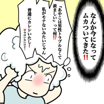 男性にモテる友人から「彼氏とうまくいっていない」と相談されました。けんかの原因は、彼氏と男友達が彼女を取り合うから。「そうなんだー」と話を聞いていた作者のあやこさんでしたが…。インスタグラムで公開された漫画が、「これは腹が立つ!」と話題になりました。作者に話を聞きました。