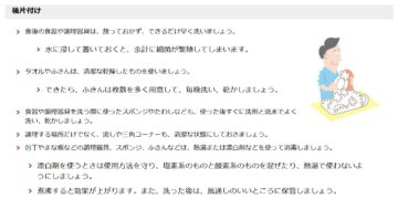 ・食後の食器や調理器具は放っておかず、できるだけ早く洗う