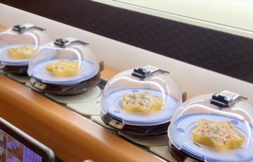 「流れるスター」シリーズでは、四大添加物を使用していないオリジナルマヨネーズを使ったサラダ、コーン、ツナサラダを、スターをかたどった特製カップに盛り付けた「流れるスターサラダ」「流れるスターコーン」「流れるスターツナサラダ」が登場。回転レーンに流れる際に、“まるで流れ星”のように連なって流れるということです。「天の川フルーツポンチ」は、星をイメージした黄色のマンゴーゼリーと、爽やかなサイダーを組み合わせて、さっぱりとした味わいになっています。価格は「流れるスター」シリーズ3種が115円(以下、税込み)、「天の川フルーツポンチ」が240円。
