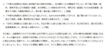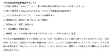 消費者庁は「子どもの顔色や汗の量など、体調変化に周囲の大人が気を配りましょう!」「車内熱中症にも注意!」と呼び掛けています。