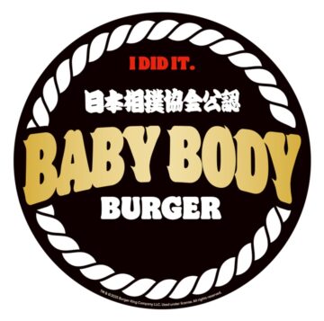 今回発売される、「日本相撲協会」とのコラボレーション商品「BABY BODY BURGER」は、ビーフパティ5枚、ベーコン4枚、チェダーチーズスライス4枚、ピクルス、レタス、トマトがサンドされた一品。白ワインビネガーの爽やかな酸味、トマトペーストの濃厚なうま味とコクが効いた「特製オーロラソース」で仕上げています。“横綱級”の迫力を誇る日本相撲協会公認の超大型バーガーで、総カロリーは1876キロカロリー、総重量は668グラムになっています。