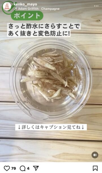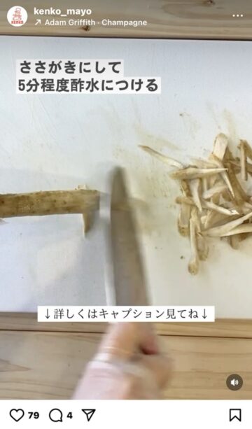 5分でゴボウのあく抜きができるテクニックとは? ドレッシングなどの製造や販売を行う食品メーカーのケンコーマヨネーズ(神戸市)が、インスタグラムの公式アカウントに、5分でゴボウのあく抜きができるテクニックを収めた動画をアップしています。