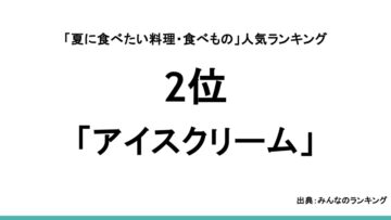 2位には「アイスクリーム」がランクイン。「夏の暑さに負けない、ひんやりとした感覚が最高!」「夏は特にだけど、冬も全然食べます! あと、たくさんの味があるのもよい所」「一年中好きですが、じっとりと暑い夏の夜に、コンビニで買って帰りながら食べるアイスが世界で一番おいしいと思っています」などのコメントが見られました。