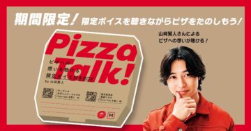 また、新商品の発売に合わせて、「ピザへの想いを聴ける限定ボイス付きBOX by 山崎賢人」が登場。ボックスに印刷された2種類の二次元コードから「Pizza Talk!」特設サイトにアクセスすると、山崎さんが“ピザへの想い”を語った音声を聴くことができます。