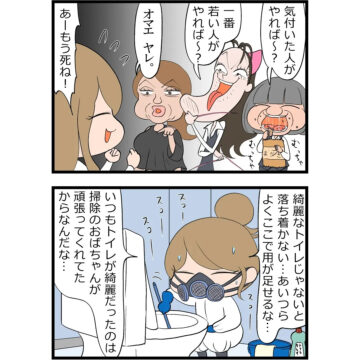 【漫画】清掃のおばさんが不在になった途端、トイレは“地獄”に… 当たり前だった“きれい”の裏にある、見えない支え