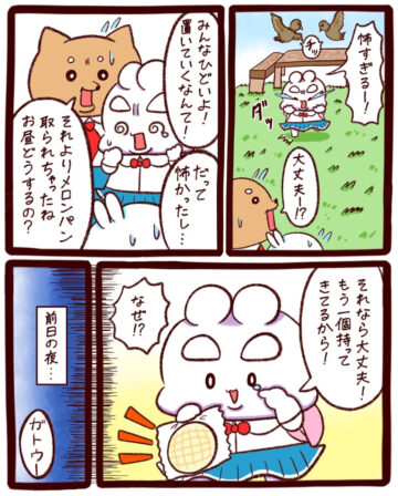 Q.もしトンビにメロンパンを取られていなかったら、予備のメロンパンはどうしたでしょうか。
