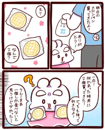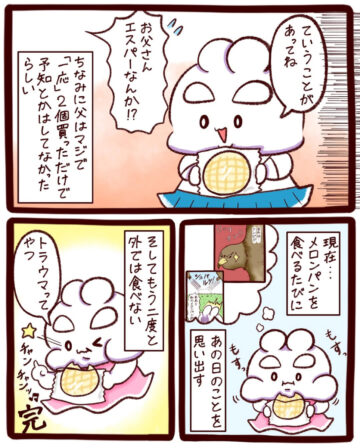 ガトウさん「その日の夜、父に『おかげさまで助かった』と、喜んで報告しました。父は元々反応が薄いので、『そっかあ』ぐらいしか言いませんでしたが、表情はうれしそうでした。きっと『一応』買ったメロンパンが役に立って、父もうれしかったのだと思います」