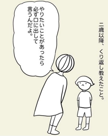 娘の「あぴちゃん」に、「やりたいことがあったら、必ず口に出して言うように」と教えてきた母。ある日、あぴちゃんが「ラーメンを食べたいから作って」と頼んできたとき、「面倒だからいやだ」と断りました。するとあぴちゃんは…という内容で、読者からは「プレゼン力が鍛えられる!」「勉強になります」などの声が上がっています。