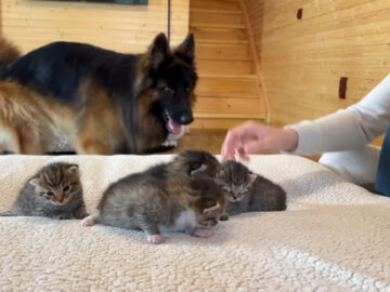 「ほんとに優しいね」「紳士的」 生まれたばかりの子猫たち&ジャーマンシェパードの《出会い》に感動の声