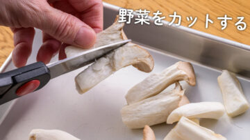 (1)ブロッコリーは小房に分け、電子レンジで3~4分加熱する。エリンギはキッチンばさみで長さを半分に切り、4等分に切る。