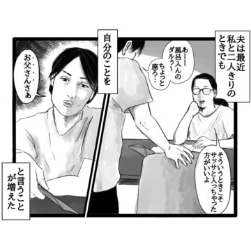 子どもがいないときも、自分のことを「お父さん」と言うようになった夫。それに気付いた妻は…という内容で、読者からは「愛だね!」「ジーンとしました」などの声が上がっています。