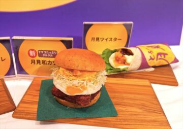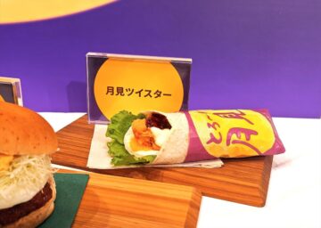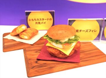 同社は2013年に“月見”シリーズを発売開始。今年の月見は、例年以上にたまご好きに愛してもらえるように「とろ~り月見」にとことんこだわった、「とろ~り月見和風チキンカツバーガータマゴたっぷりタルタル」(590円、以下、税込み)、「とろ~り月見チーズフィレバーガー」(540円)、「とろ~り月見ツイスター」(480円)、「おもちカスタードの月見パイ」(300円)の4商品がラインアップされました。
