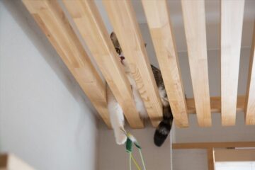植田さん「猫は、縦の移動が犬に比べて多い動物なので運動不足にならないよう、縦移動できるスペースのある空間が望ましいです。リノベーションを行うと壁や天井に『キャットタワー』を造作で設置することが可能です。置き型のキャットタワーは場所をとってしまうため、もともと作っておくと無駄のない空間になります。