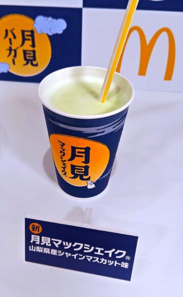 今年は、“月見ファミリー”の味の決め手となっているソース「トマトクリーミーソース」を2017年以来、8年ぶりにリニューアル。新作バーガーとして「とろ旨すき焼き月見」(540円~)、夜マック限定で、100%ビーフパティ3枚を使った「トリプルビーフのとろ旨すき焼き月見」(780円~)を新発売。さらに、新作スイーツ「あんバターとおもちの月見パイ」(190円~)、「月見マックシェイク 山梨県産シャインマスカット味」(Sサイズ/190円~)、そして「チキンマックナゲット」の新ソース「瀬戸内レモンペッパーソース」(40円~)と、5つの新商品を含む全8商品がラインアップされています。