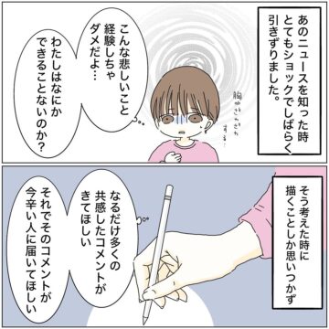 ポメさん「ある日見たニュースがあまりにも悲しいニュースで…。自分自身もワンオペ育児で精神的に追い詰められ、体調も崩して突発性難聴までになってしまった経験があるので、『人ごとではない』と感じました。『私に何かできることはないのか?』と思い、この漫画を描きました」