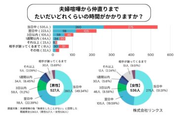 また、年代別では、20〜30代は「謝る・話し合う」が主流なのに対し、40〜50代では「どちらからともなく仲直りする」割合が増加していたといい、同社は「長年の付き合いの中で、言葉より“空気感”や“いつもの生活”で自然に和解する夫婦が多いとみられます」とコメントを寄せています。