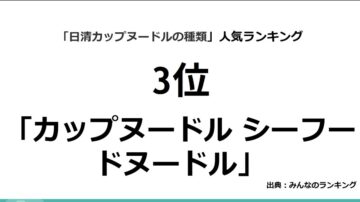3位は「カップヌードル シーフードヌードル」でした。回答者からは「いろいろな種類のカップヌードルを食べてきましたが、なんだかんだでこれに落ち着きました。クリーミーさと魚介の風味がたまりません!」「香りから食欲が湧くので、隣で友達が食べていたらついつい同じシーフード味を買って食べたくなってしまう」「カップヌードルもたくさんの味が出ていますが、やっぱりこの味が原点であり、一番シンプルで食べやすいですね」といった声が寄せられていました。