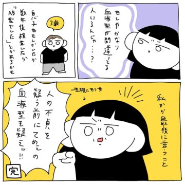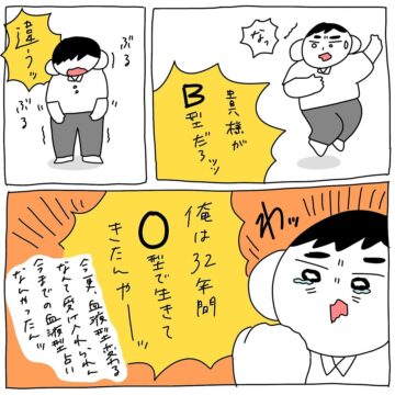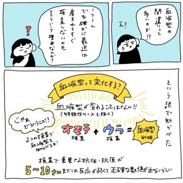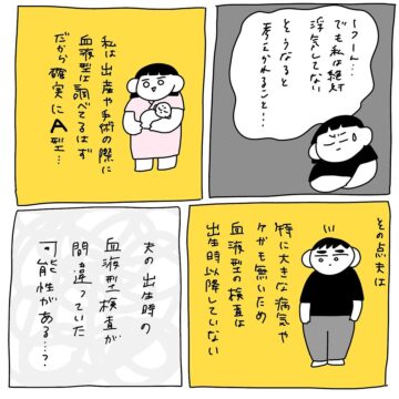 検査の結果で、息子の血液型がB型と判明しました。両親の血液型からは生まれないはずの血液型だったため、夫婦に衝撃が走りますが…いう内容で、読者からは「血液型の誤認や誤診、意外と多いみたいです」「私も調べ直してもらおうかな…」などの声が上がっています。