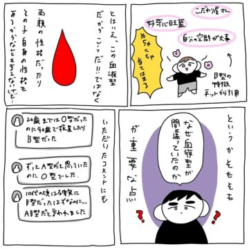 さし身さん「とても衝撃的でした。A型かO型だと思っていたので、『え、B?』『何かの間違い?』と、頭の中がハテナでいっぱいでした」