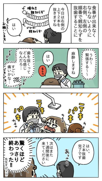 主婦ブロガーのぴぴこさんの漫画「親知らずを抜きに行って、歯医者さんが嫌いになった話」が、Xで話題となっています。
