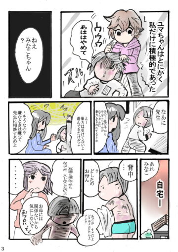 小学生の頃、人と一緒にいることが大の苦手だった作者。休み時間はいつも1人でいる作者に唯一絡んでくる女の子がいたのですが、彼女には他害行動があり…という内容で、人間関係の複雑さを描いたエピソードになっています。
