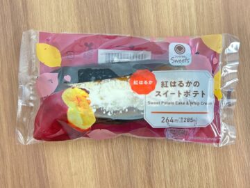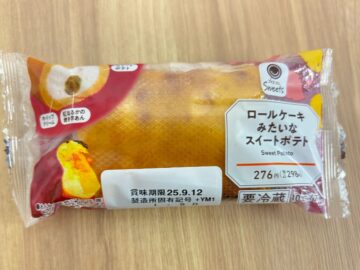 「ロールケーキみたいなスイートポテト」は、紅はるかの芋あんとホイップクリームを、スイートポテトの生地でロールケーキのように包み込んだスイーツです。紅はるかのねっとりとした食感と濃厚な味が強く感じられ、「ロールケーキの見た目なのにスイートポテトの味がする!?」と、驚いてしまう見た目と味わいになっています。中のホイップクリームはかなり甘いため、甘い物が好きな人におすすめ。価格は298円。