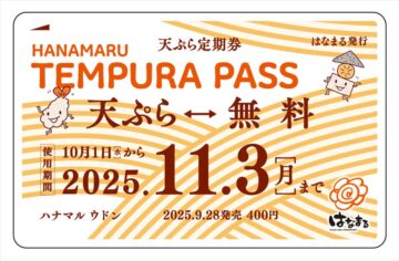讃岐うどんチェーン「はなまるうどん」などを展開するはなまる(香川県高松市)が、うどん1杯ごとに、天ぷらまたはおでん1品が無料になる「天ぷらおでん定期券」を販売中です