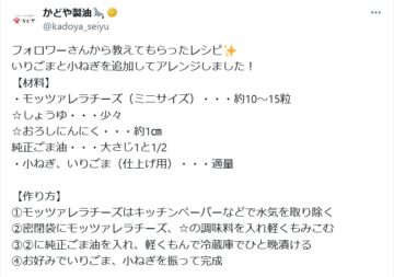 コーヒーに組み合わせるとお勧めの調味料について、ごま油や食品ごまなどの製造、販売を手掛けるかどや製油が、Xの公式アカウントで紹介しています。