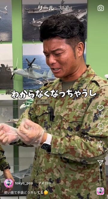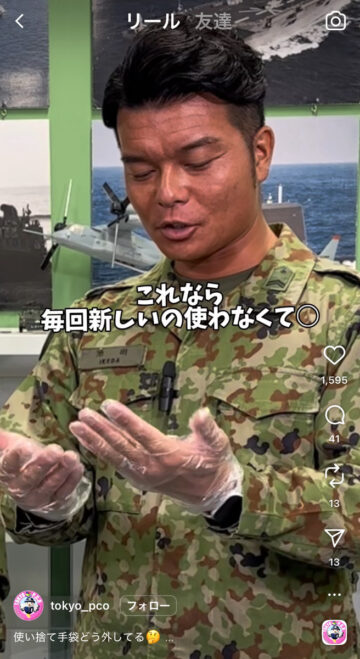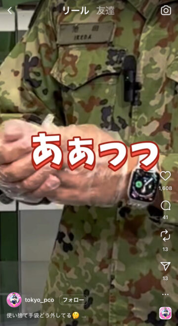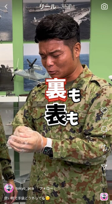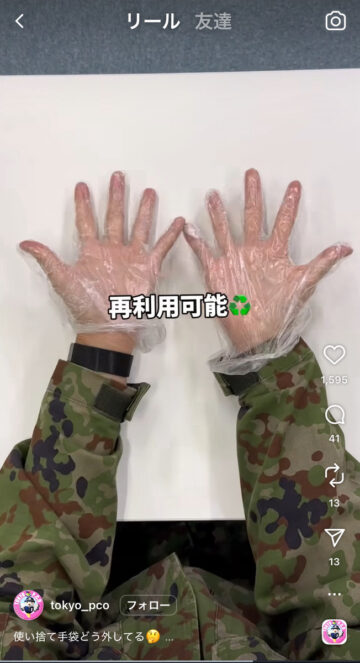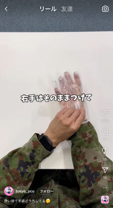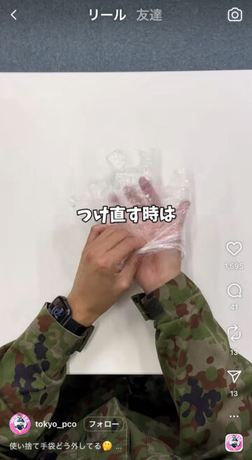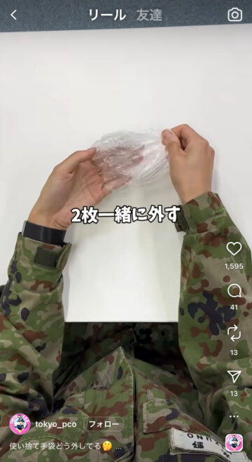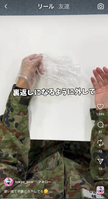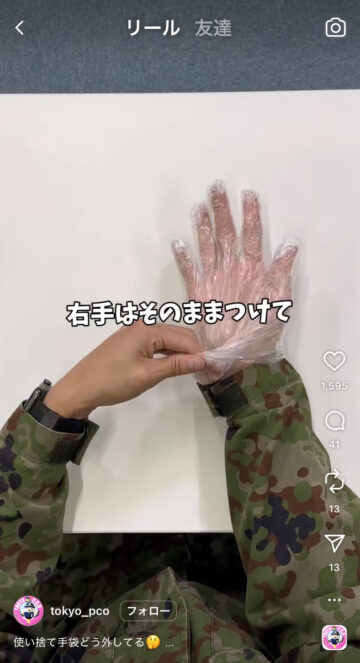 使い捨て手袋を上手に取り外す方法について、自衛隊東京地方協力本部がインスタグラムの公式アカウントで紹介しています。