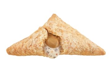 「三角チョコパイ」は、何層にも重ねられたサクサク食感のパイ生地と、“とろ〜り”とした温かいクリームが楽しめる、同店の秋冬の定番人気ホットスイーツです。