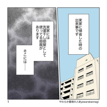 やわらか霊視の人さん「私が霊視の修行をするようになってから、実家に帰るたび、部屋の角に誰かいると感じることが何度かありました。賃貸なのでいつからいたのかは分かりませんが、帰省を重ねるうちにどんどんその存在は鮮明になっていって。しかも、母もそれに気付いていたんです。その状況が興味深かったので漫画に描こうと思いました」