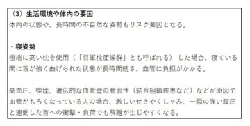 できる限り横になるなどして、体を動かさず安静にしてください。首に負担をかけないよう、首をひねったり、急に動かしたりすることは絶対に避けてください。安静にすることで、血管への負担を減らし、病状の悪化を防ぐことが期待できます。