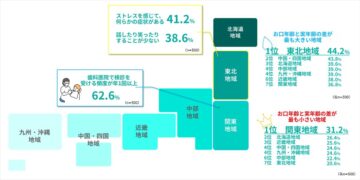 調査は、同社が独自に開発した、歯や口内の状態・生活習慣などから算出される口内の健康状態を全国7地域(北海道地域、東北地域、関東地域、中部地域、近畿地域、中国・四国地域、九州・沖縄地域)で暮らす20~60代の男女3500人を対象に、チェックシートで実施。