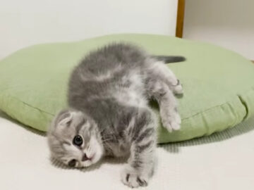 「とろける」とはまさにこのこと? YouTubeチャンネル「Kitten Class」では、スコティッシュフォールドの子猫がクッションの上でくつろぐ様子が配信され、動画のコメント欄には「行動の全部がかわいい」「本当にクッションからとろけてる」の声が続出しました。