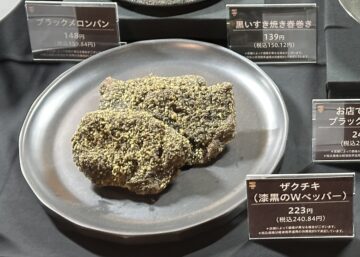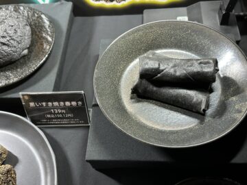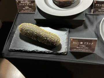 同社が販売するのは、すき焼きの具材を直火釜で炒め、パリパリの黒い皮で包んだ「黒いすき焼き春巻き」(150.12円。以下税込み、消費税8%)、ブラックペッパーをきかせたフライドチキン「ザクチキ(漆黒のWペッパー)」(240.84円)、黒い生地に黒いビスケット生地を重ねた「ブラックメロンパン」(159.84円)のほか、「カレー棒 ブラック」(192.24円)、「ほおばりんぐドーナツ ブラック」(181.44円)、「お店で焼いたブラッククッキー」(260.28円)です。