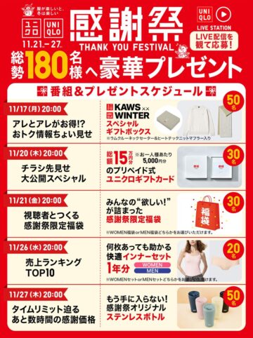 ユニクロが期間限定キャンペーン「ユニクロ感謝祭」を11月21日から開催します。