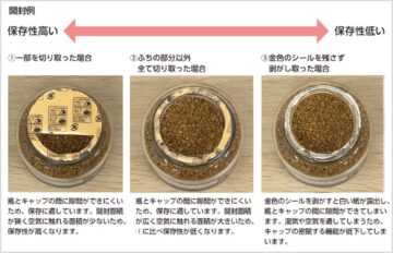 【豆知識】「えっ…保存力に大きな差が!」 これがインスタントコーヒーの「内ぶたシール」を一部切り取った場合、全部はがした場合の比較画像です!