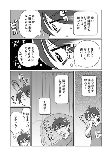 桜木きぬさん「友達のパートナーさんが、『頭痛の前にいつも視界にギザギザの光が見える』と言っていたのを思い出しました。『痛み止めを早めに飲まないと効きにくい』と言っていたのも思い出したので、『私も早く薬を飲まなきゃ』と思いました」