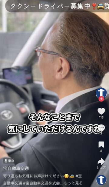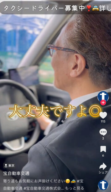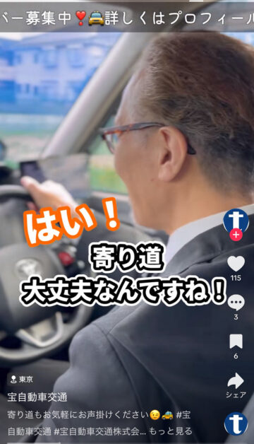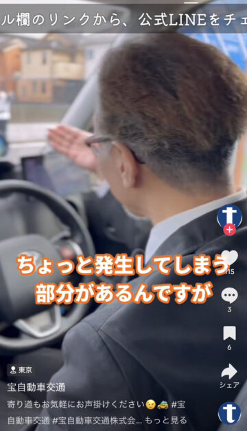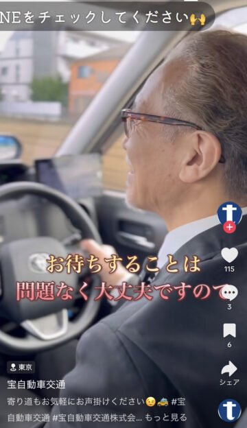 タクシーに乗った後、コンビニに寄ってもらうことは可能なのでしょうか。タクシー会社の宝自動車交通が、公式TikTokアカウントで紹介しています。