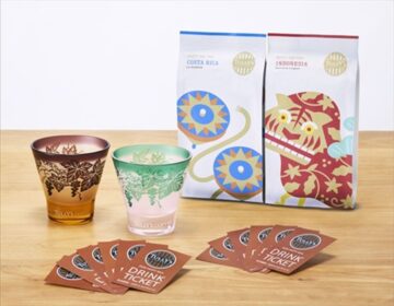「楽天市場限定Dセット」は、「彫刻硝子グラス(ペア)」「コスタリカ ラ グラディオーラ(豆/140グラム)」「インドネシア スマトラ リントン(豆/140グラム)」「ドリンクチケット(12枚)」がセット。価格は1万8000円。