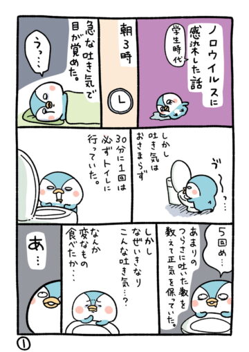 漫画家・イラストレーターの桐谷とうしろうさんの漫画「ノロウイルスに感染した話」が、Xで1900以上の「いいね」を集めて話題となっています。