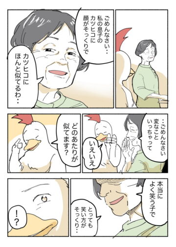 作者が喫茶店で漫画を描いていたところ、隣に座った女性から「息子に似ている」と声を掛けられました。女性は息子さんのことを話しながら、涙を流し始めて…という内容で、読者からは「まさに、愛!」「こんな人、結構いそう」「直前までグッときてたのに(笑)」などの声が上がっています。