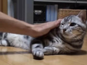 そんなループを繰り返していた猫と飼い主でしたが、後半は展開が変わりました。飼い主さんが、手をのせ返さずにナデナデするというイレギュラーな行動に出たのです。かわいさに我慢できなくなったのでしょうか。これには猫も不意を突かれたのか、「ニャっ、ニャんだ!?」という表情を見せました。