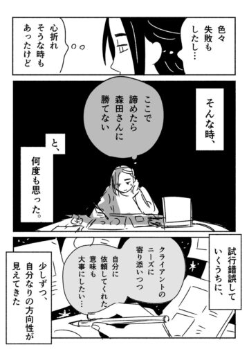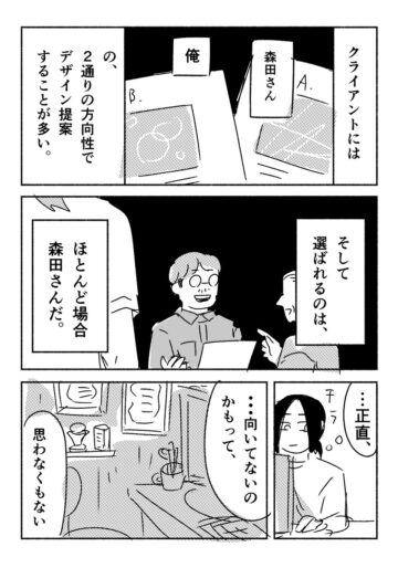【漫画】「自分より才能がある人」への憧れと悔しさ… 同僚に負け続けたデザイナーの「勝ちたい」に隠れた“本音”
