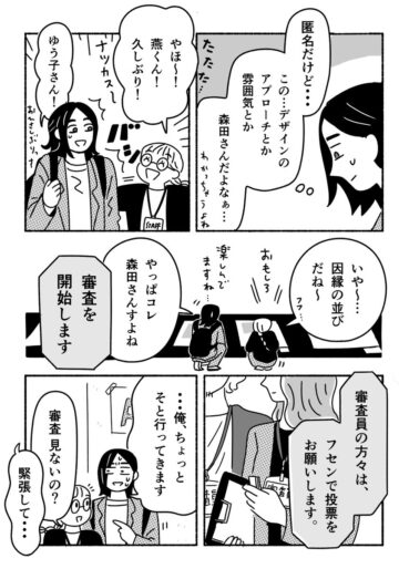 デザイナーの主人公は、同僚にいつもデザインで勝てず、悔しさを抱えていました。会社を辞めてフリーランスとなり、自分なりに自信が持てるデザインができるようになったので、あるコンテストに応募したところ…という内容で、読者からは「デザイナーたちがあまりにもリアル!」「意識せざるをえない人っていますよね」「主人公を応援したくなりました」などの声が上がっています。